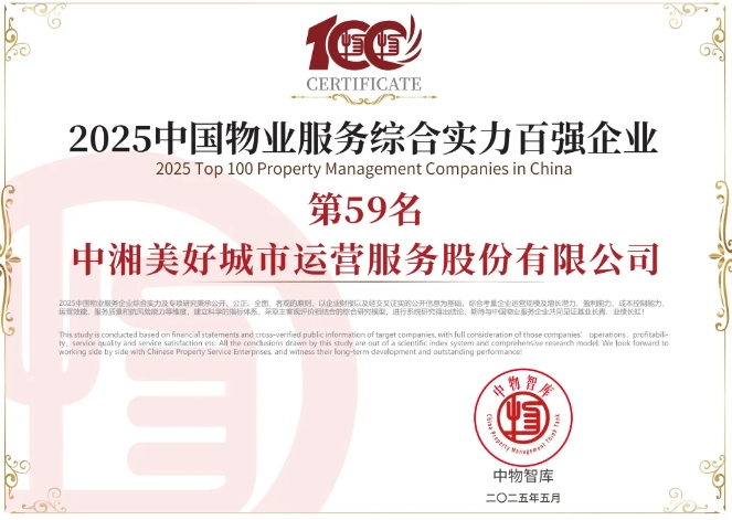 • 載譽篤行 | 中湘美好榮登“2025中國物業服務綜合實力百強企業、國有企業百強、品牌影響力百強企業”榜單